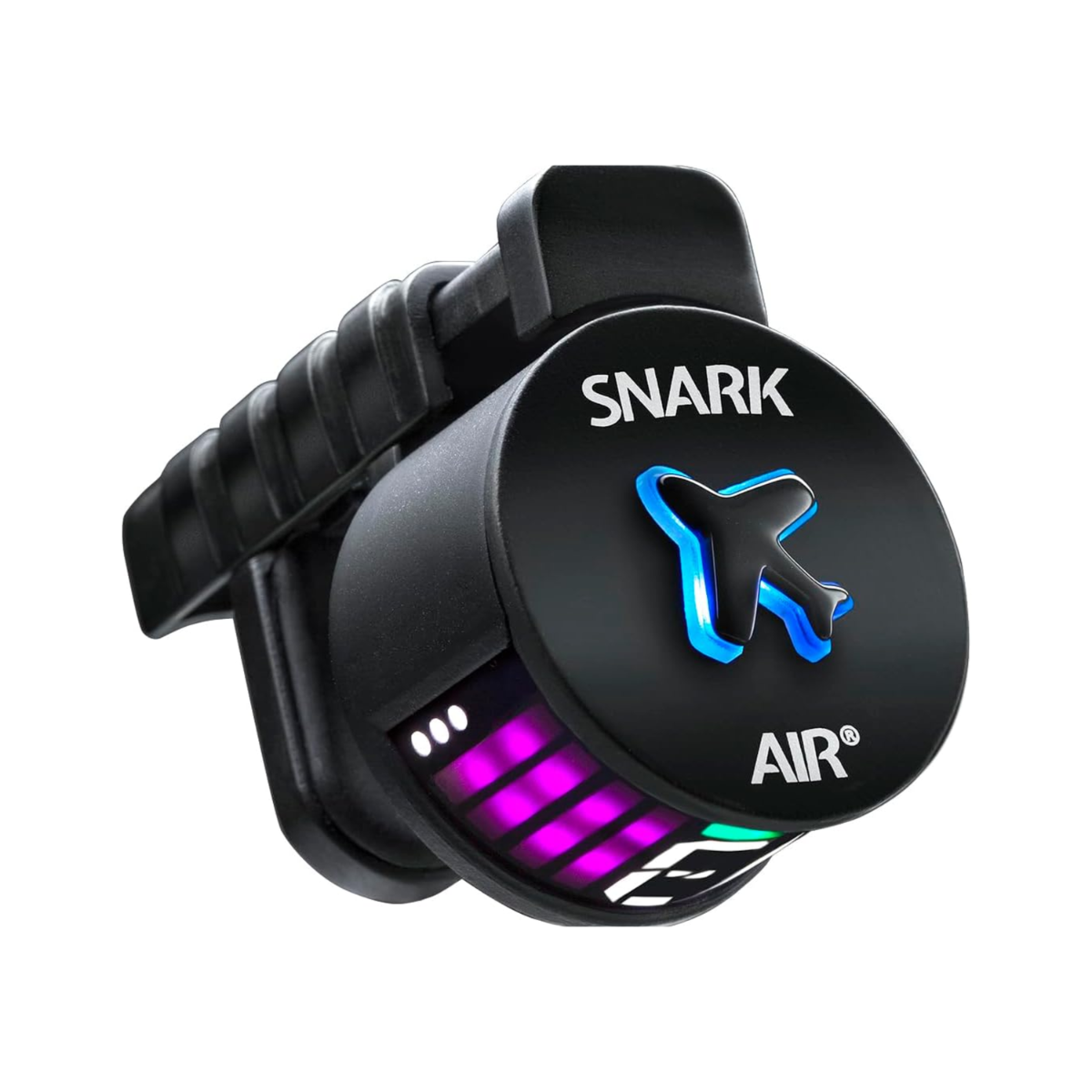 O Snark Air-1 é um afinador cromático de encaixe (clip-on) compacto e recarregável, ideal para instrumentos como guitarra, baixo, ukulele, banjo e mandolim. Ele se destaca pelo seu display LED colorido, que indica com clareza se a afinação está abaixo (magenta), acima (laranja) ou precisa (verde).