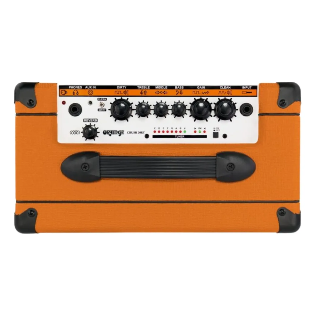 Novidade da Orange, o Crush 20RT é construído a partir da plataforma tonal do Crush 20 com mais funcionalidade através da inclusão de um reverb e afinador cromático integrado. O Crush 20RT possui canais de Clean e Dirty, além de um novo gain, design de preamp de 4 estágios, disponibilizando uma grande gama de sons distorcidos e de overdrive, ricos em timbres harmônicos.