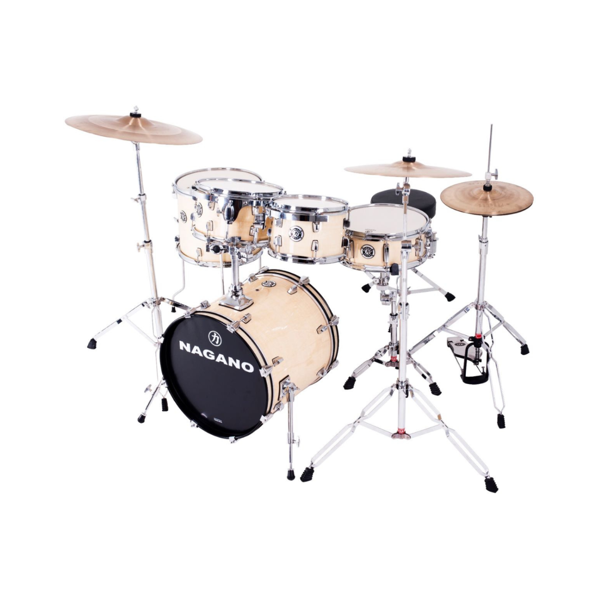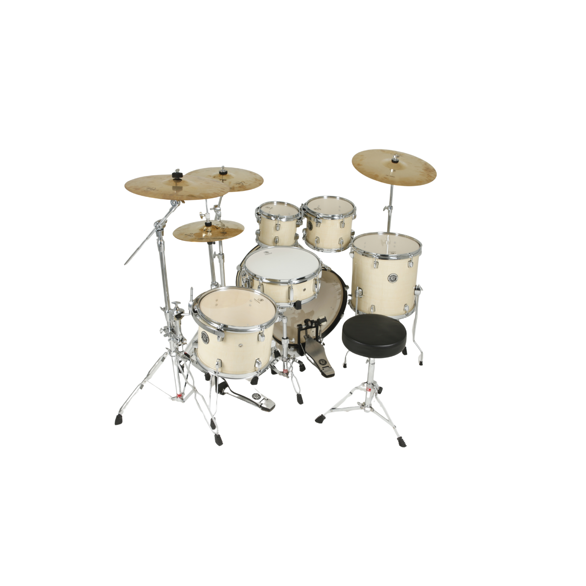 O modelo Garage Fusion possui um bumbo de 20×16 com excelente controle de harmônicos e capacidade de trabalhar em várias afinações e dinâmicas. O kit inclui Tons de 10×08 e 12×09, e o surdo é de 14×14, ideal para ambientes pequenos e estilos mais jazzistas e brasileiros. A caixa de 14×05 oferece o som clássico da história da bateria: rimshots, backbeats e esteira.