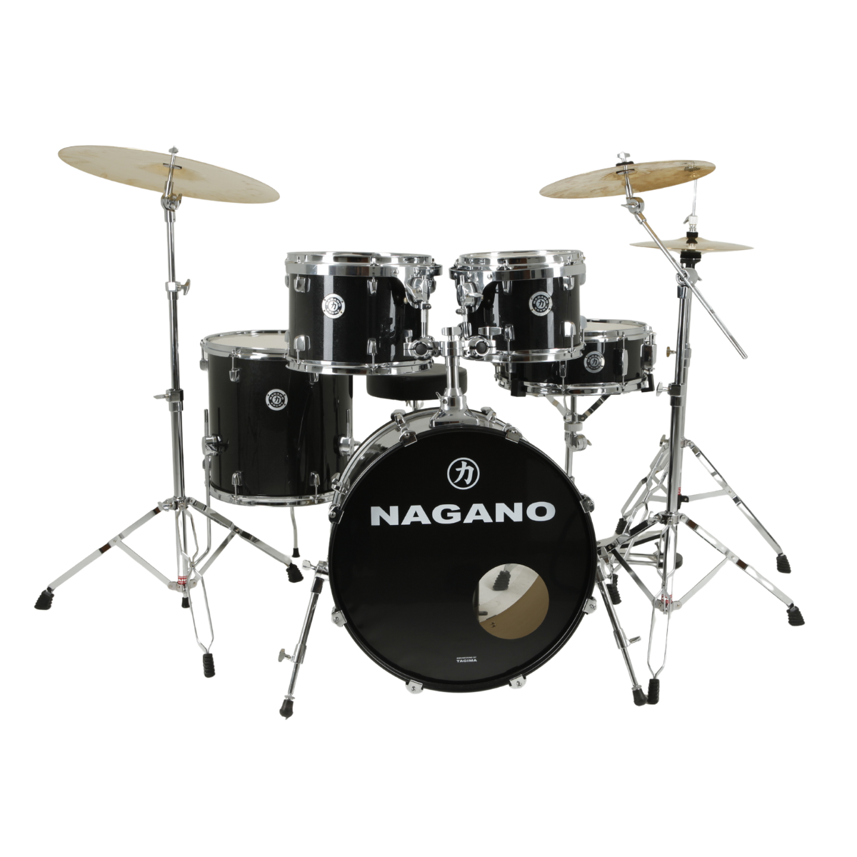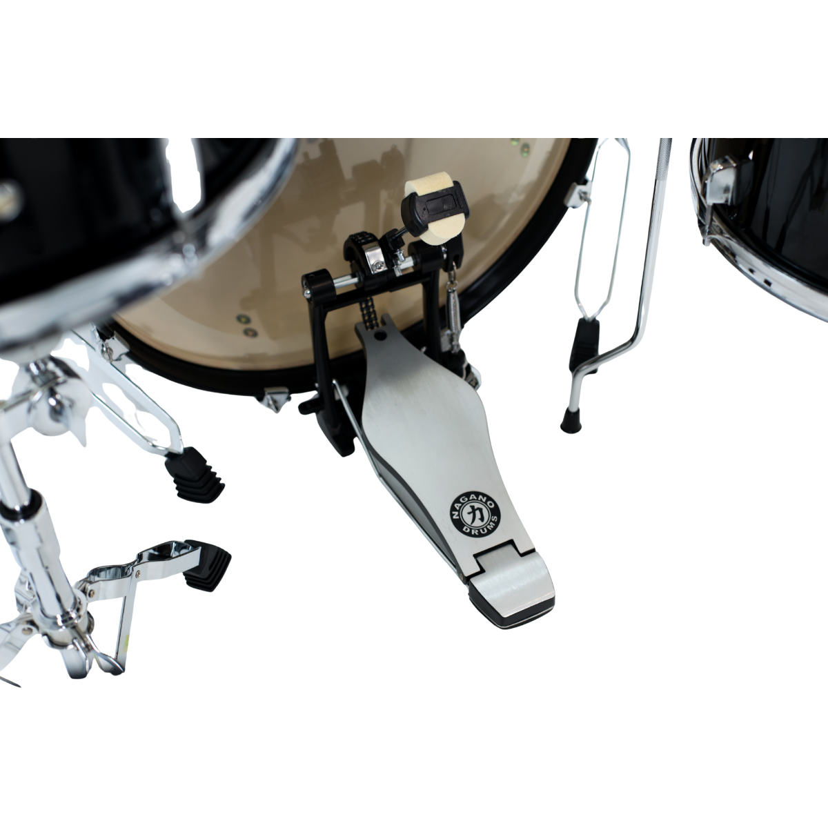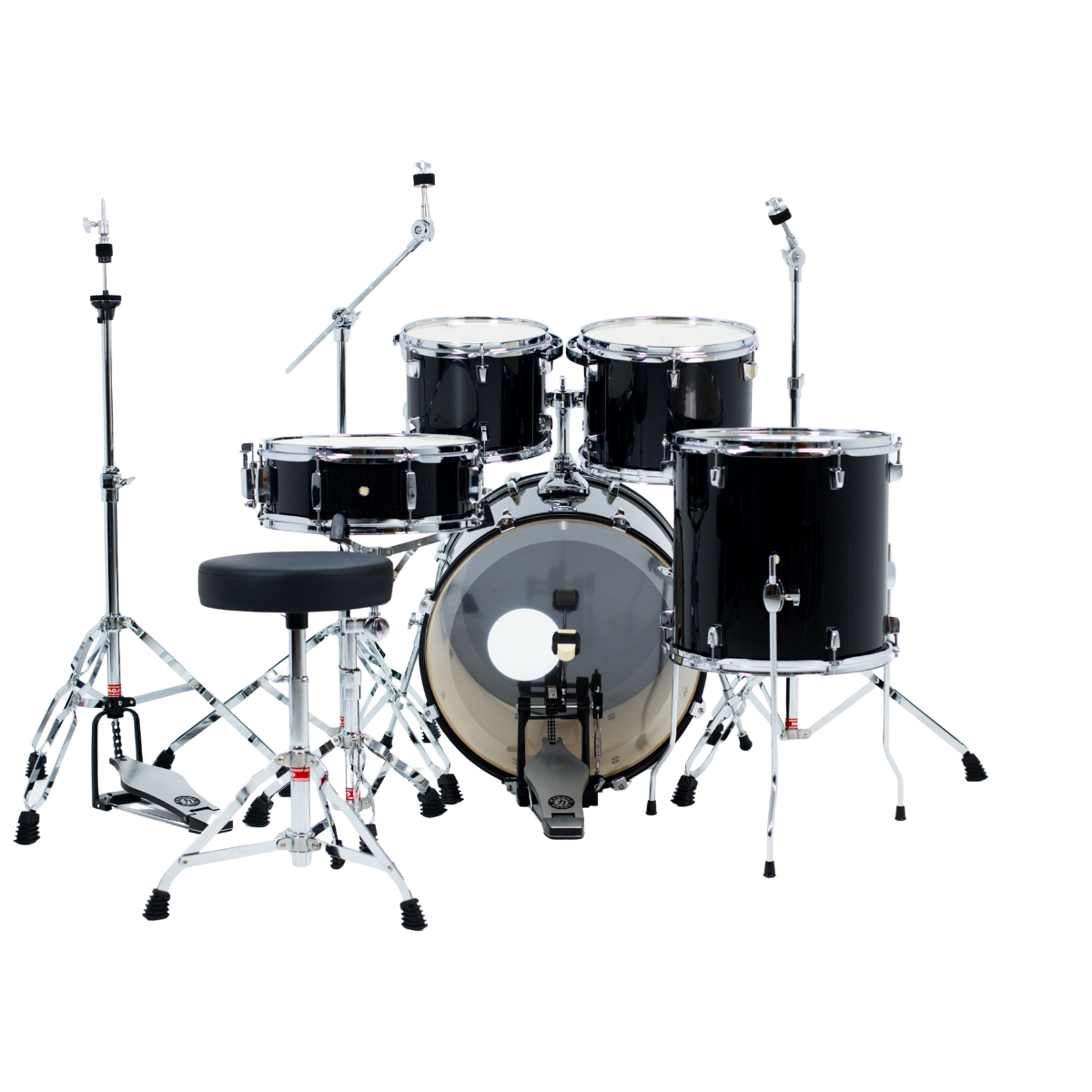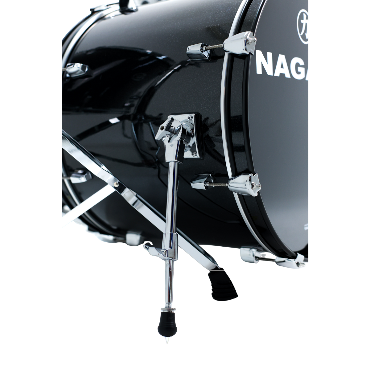 – Peles de filme duplo nos tons e surdo, porosa na caixa e bumbo com muffle interno