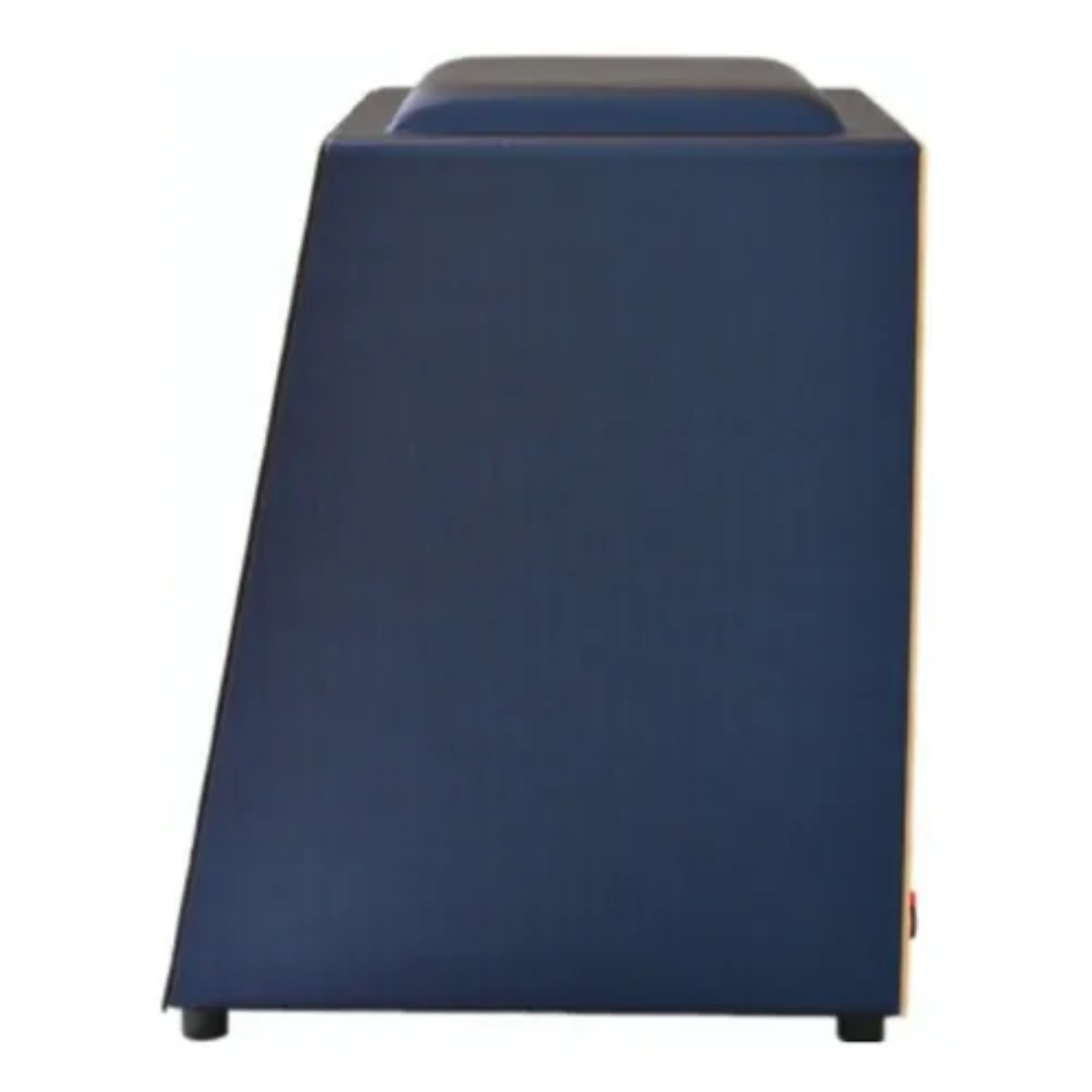 – Caixa em madeira de reflorestamento com acabamento em Courvin azul metálico e tampa preta com pintura automotiva;