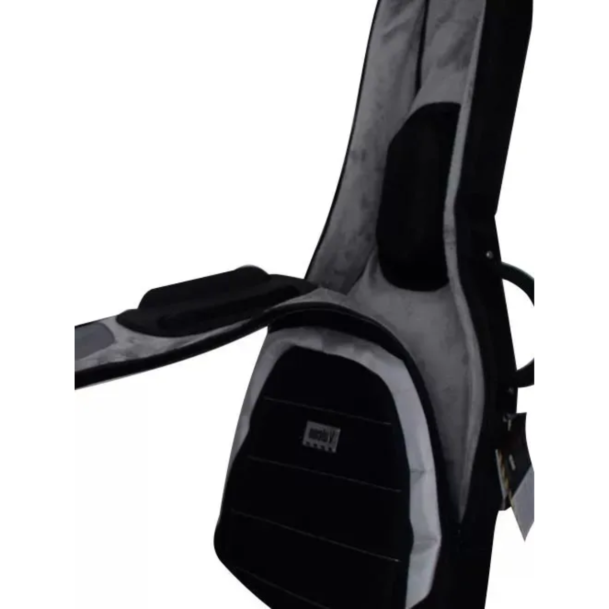 Alças do tipo mochila com compartimento para quando não em uso (em uso das alças o compartimento pode ser usado para partituras, pastas, etc).