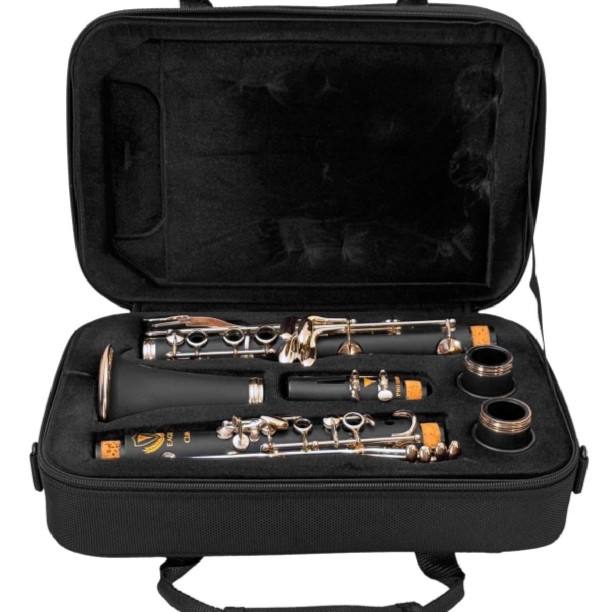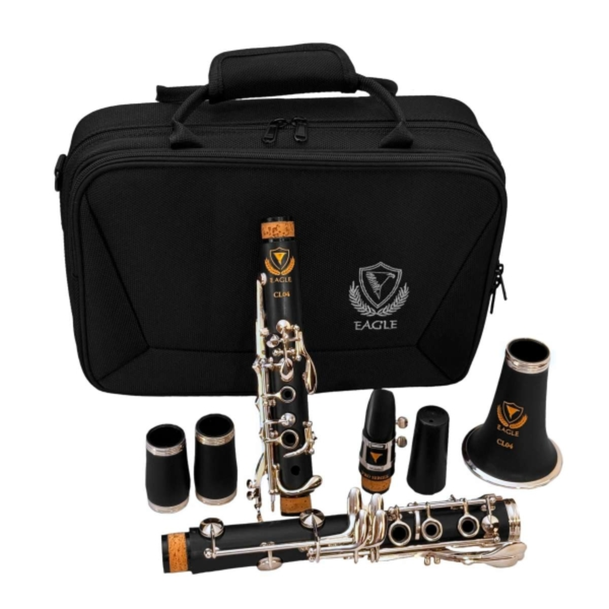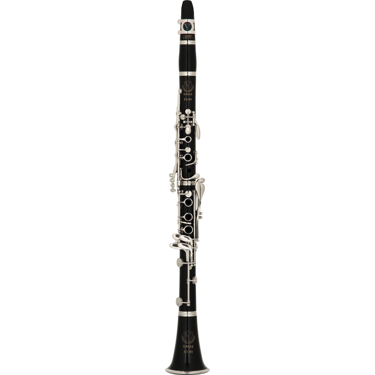 O clarinete CL04 da Eagle possui chaves niqueladas com desenho ergonômico contemporâneo que lhe confere um visual elegante e maior resistência às condições de uso do músico. Ele se destaca pela qualidade de sua construção e pelos materiais que o compõe. Ajustadas manualmente, as chaves ergonômicas oferecem maior conforto, respostas rápidas e afinação precisa.