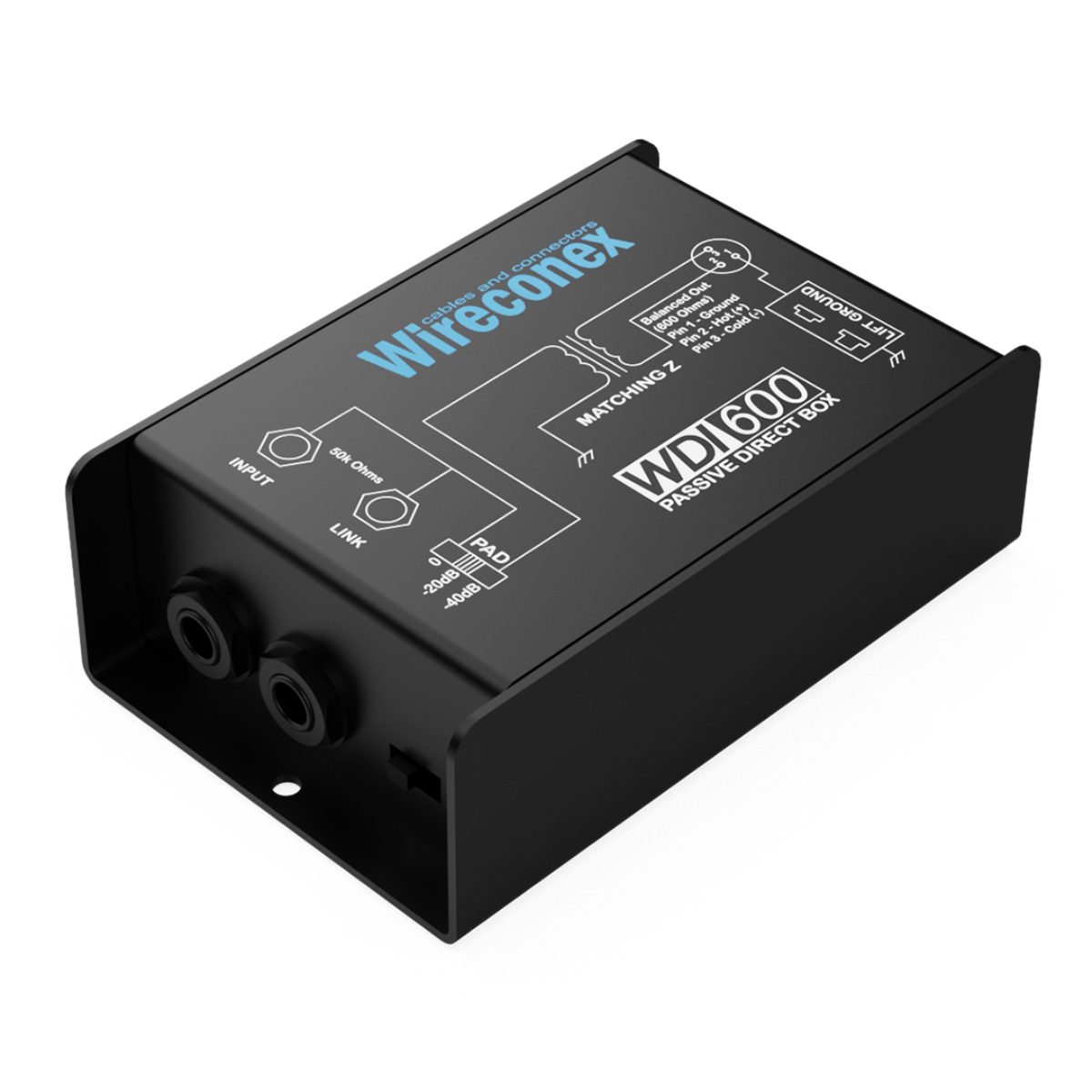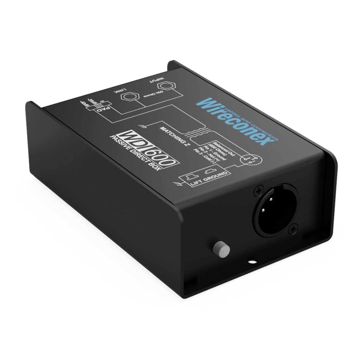 O Direct Box Wdi 600 Wireconex transforma as características elétricas de nível de linha em nível de microfone, para que os sinais possam ser transportados em longas distâncias, com alta imunidade a captação de ruídos eletromagnéticos ou de rádio frequência.