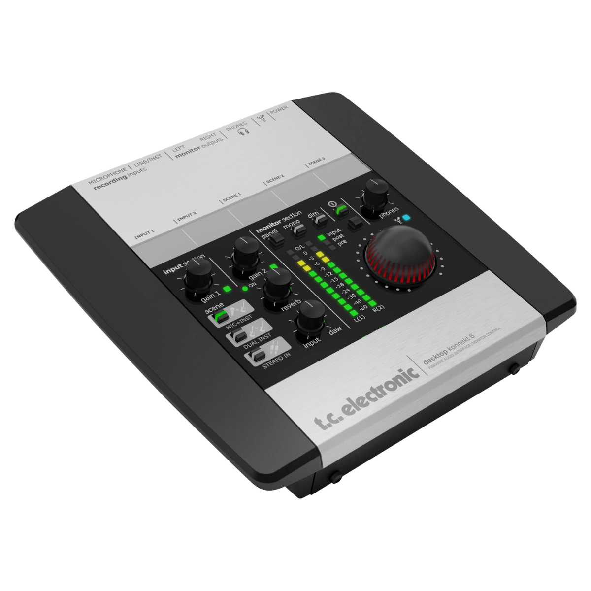 O Konnekt 6 oferece recursos de gravação de alta qualidade em um design de desktop que permite que você se concentre no desempenho, e não na tecnologia. Em suma, o Desktop Konnekt 6 tem todos os recursos que você precisa para gravar instantaneamente instrumentos e vocais em seu Mac ou PC.