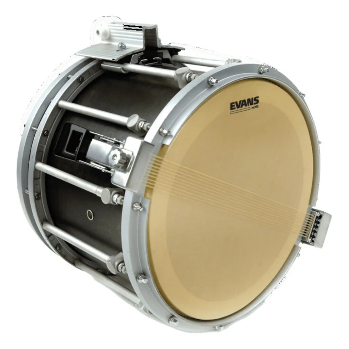 As peles Evans MX5 Snare Side Marching contêm uma fibra de aramida e laminado de poliéster para máxima resposta de caixa. Esta pele de camada única de 5mil contém um anel fino de controle de harmônicos que melhora a articulação reforçando a durabilidade da borda, o que elimina harmônicos indesejados. Ideal para uso em marcha indoor e marcha ao ar livre