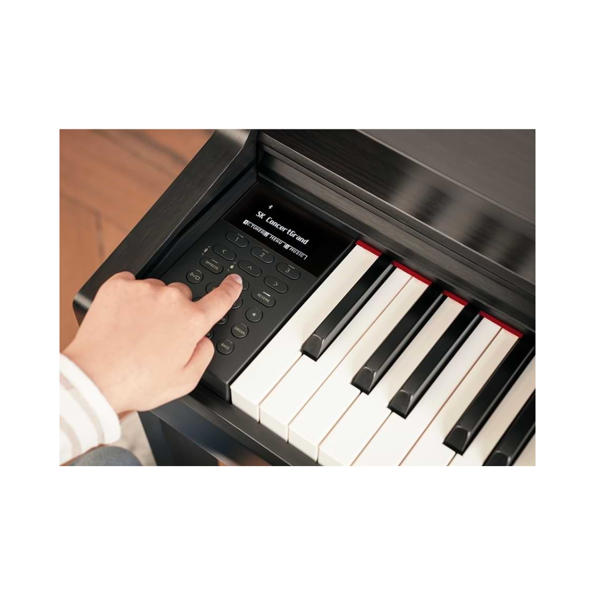 Combinando a aclamada ação do mecanismo Responsive Hammer III e os impressionantes sons de piano de cauda SK-EX, SK-5 e EX, com um potente sistema com 4 alto-falantes, conectividade Bluetooth® MIDI e áudio, recursos úteis de áudio USB e suporte para os aplicativos mais recentes, o CN301 oferece especificações impressionantes a um preço imbatível.
