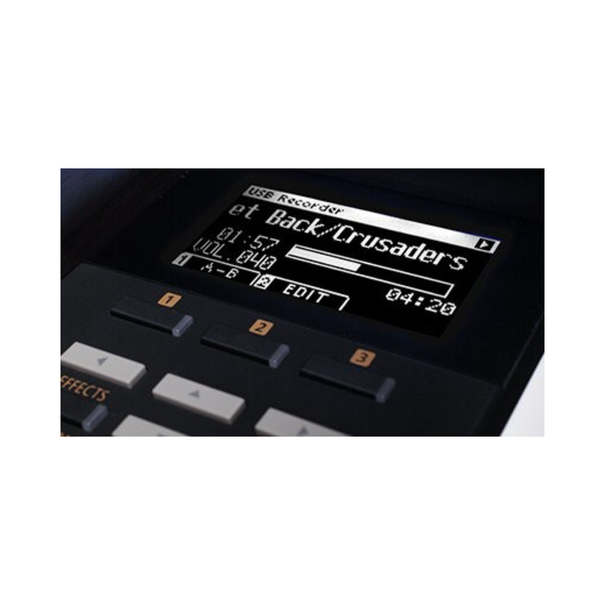 – Conexão: USB, Bluetooth, MIDI, Headphone, Line Out 1/4 “L / MONO R, Line In 1/4 “L / MONO R