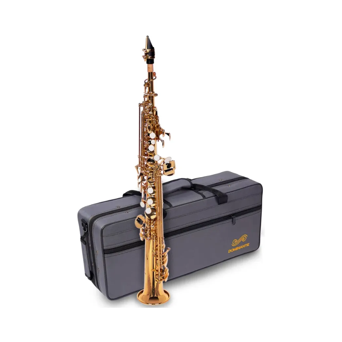 O Saxofone Soprano DOMINANTE é construído com matérias-primas selecionadas que garantem uma sonoridade diferenciada para agradar aos saxofonistas mais exigentes! É um saxofone com excelente ergonomia e muito confortável de se tocar! Vem com 2 tipos de tudel: um curvo e um reto. Isso traz mais opções de sonoridades e oferece comodidade nas escolhas do saxofonista, seja para tocar sentado ou em pé, com ou sem correia.