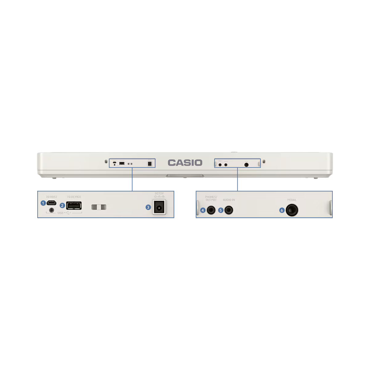 – Conectividade Moderna: Suporte para adaptador Bluetooth (MIDI/Audio – opcional WU-BT10) para conexão sem fio com o app Casio Music Space.
