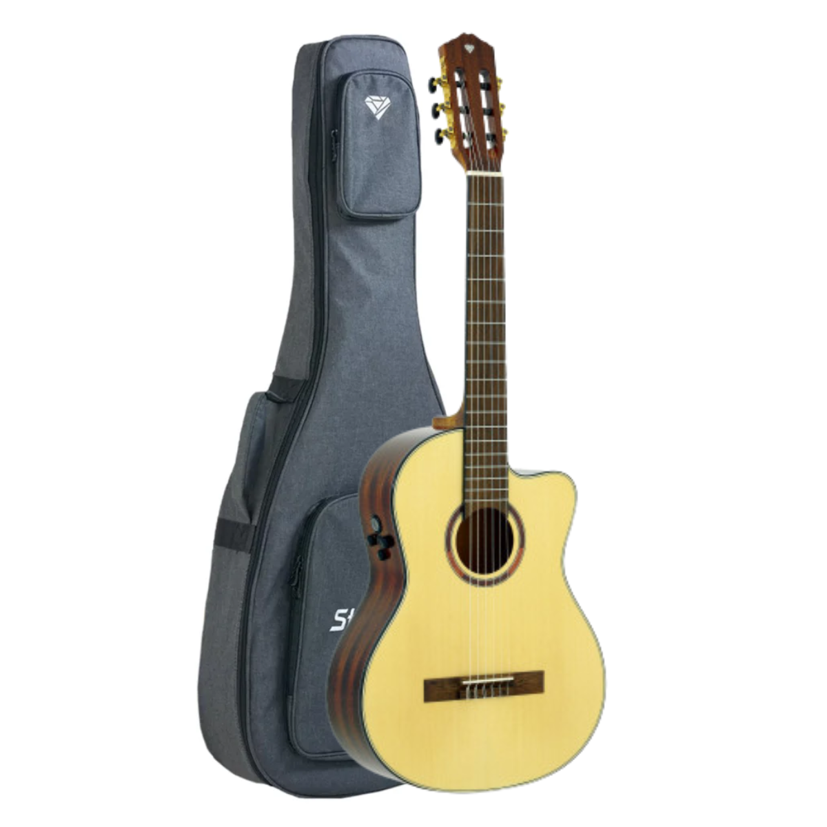 Violão Clássico Nylon de ótima sonoridade e belíssimo visual, o DC1C integra a Diamond Series apresentando ótima qualidade de construção e acabamento. Acompanha Bag.